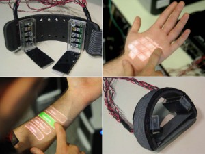 A tela seria o antebraço, através de pequenos projetores acoplados a uma